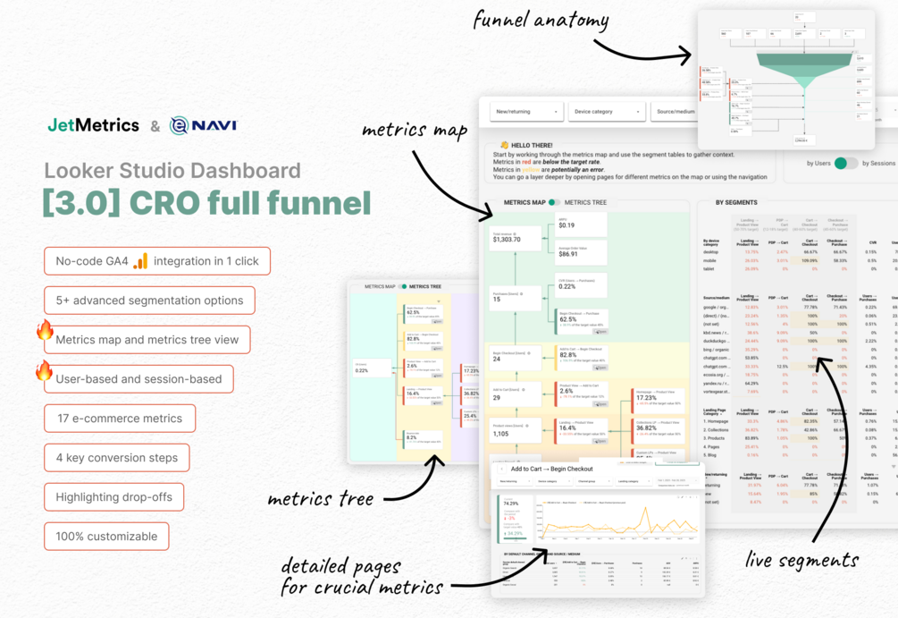 - Metrics Map — a system-style overview that shows all key steps, context metrics, and segment performance at once