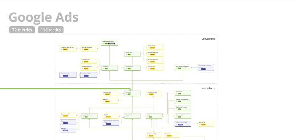 Map of 72 Google Ads metrics