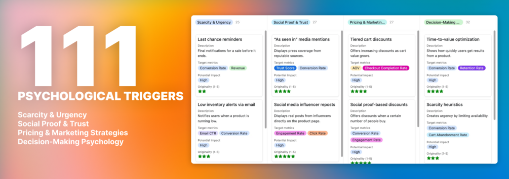 Ever wonder why some products seem to sell themselves? This collection of 111 proven psychological triggers will help you influence customer decisions, increase conversions, and grow revenue - without guesswork.